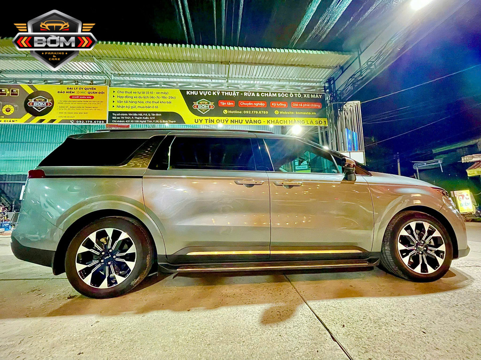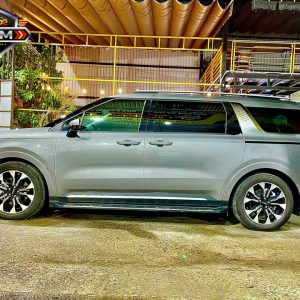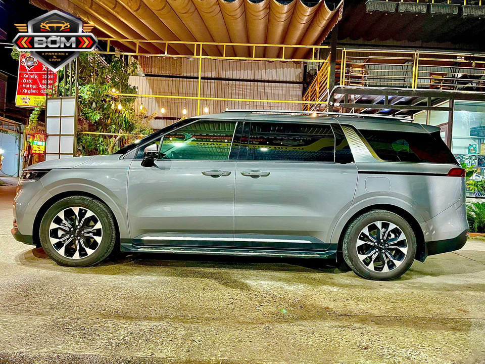 Thân xe Kia New Carnival nổi bật với các đường gân dập nổi xuyên suốt, kết hợp cùng ốp trụ C mạ Chrome với họa tiết 3D. Mâm xe 19inch thể thao được thiết kế kiểu dáng hình học hoàn toàn mới theo xu hướng tương lai đậm chất SUV.